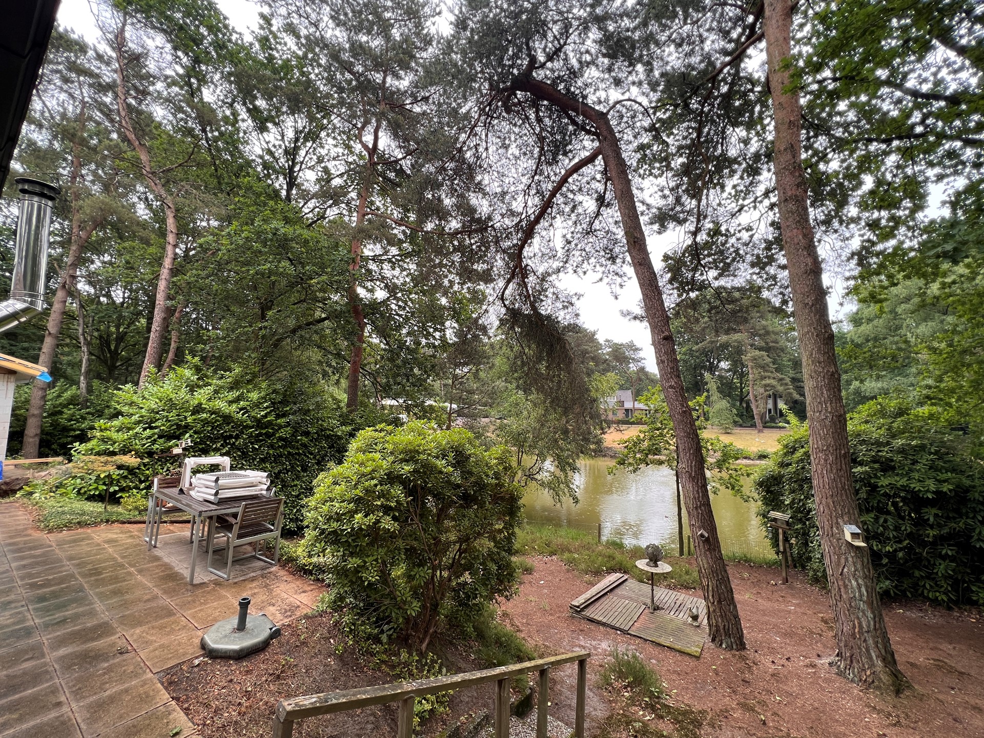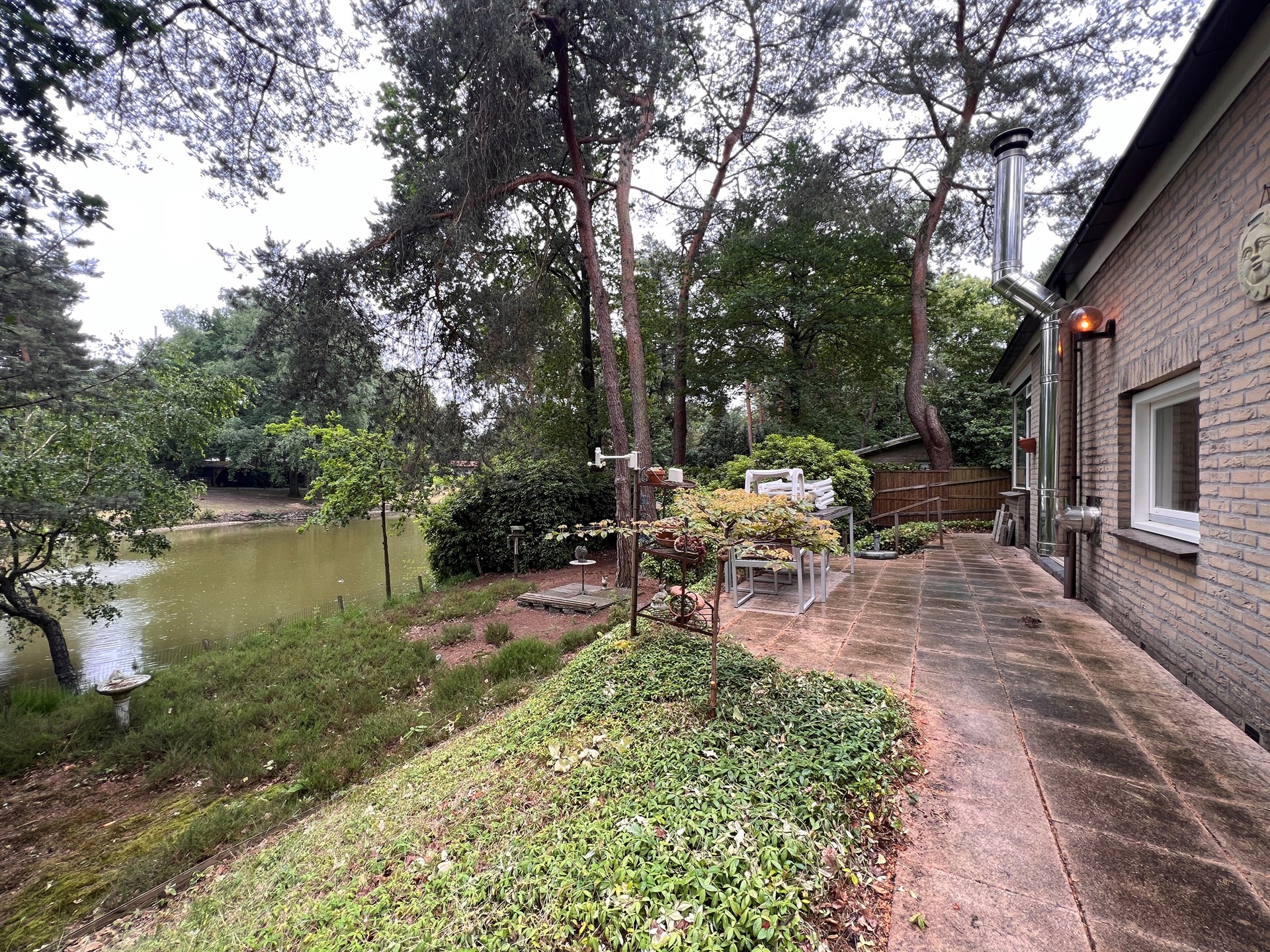 The spacious garden at the rear offers a lovely open view over the water and plenty of privacy thanks to the greenery surrounding the plot. At the front of the house, there is a private parking space.